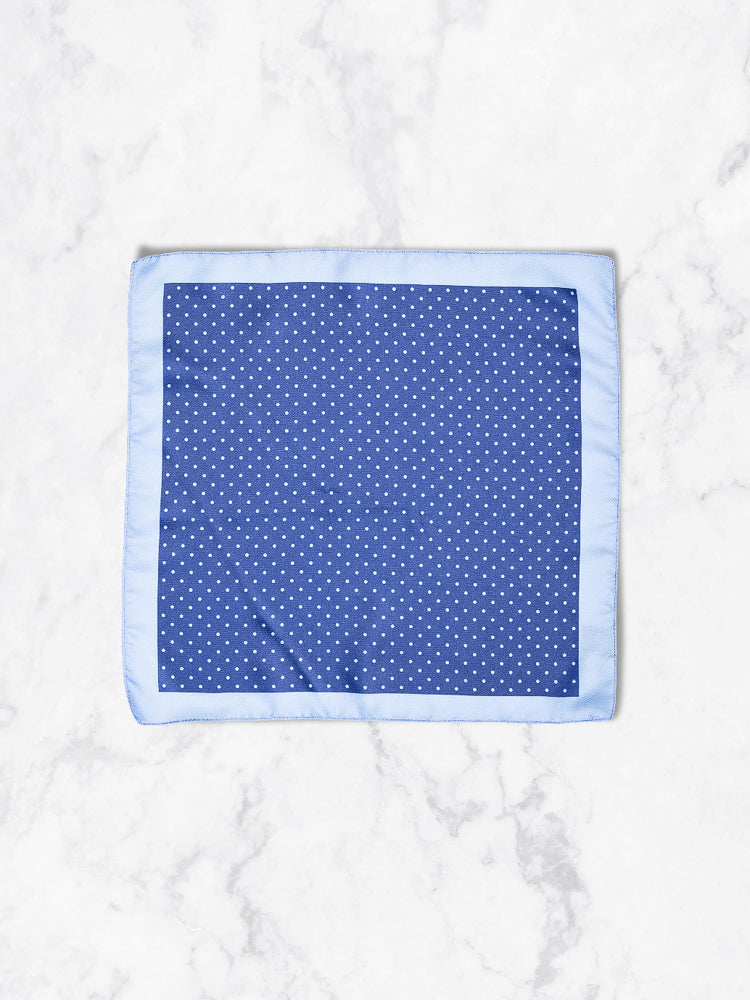 Pochette imprimée fond bleu, 100% polyester.