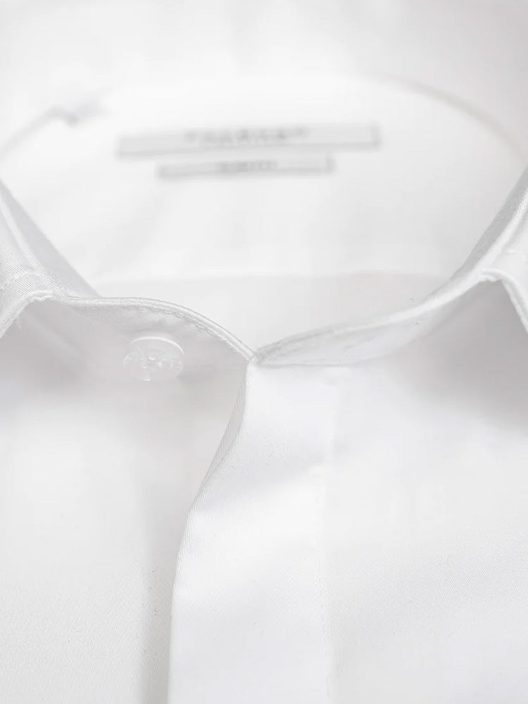 Chemise Slim Fit en popeline de coton, petit col français, gorge cachée, poignets à double boutonnage, 100% coton.