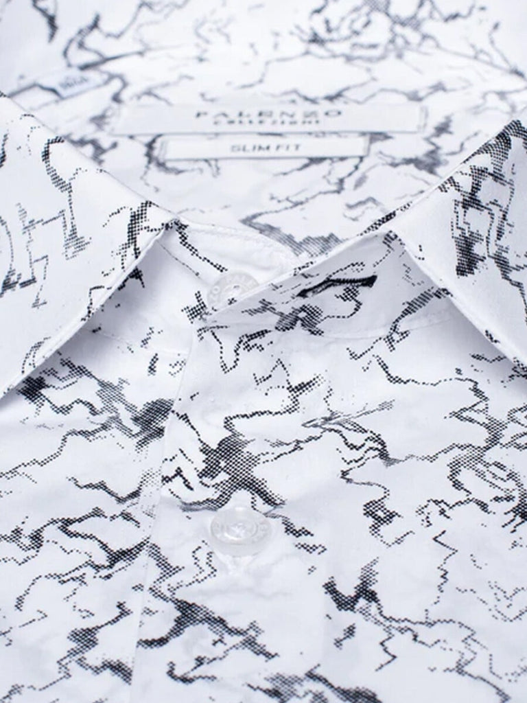 Chemise Slim Fit en popeline de coton, petit col français, poignets à double boutonnage, 100% coton.