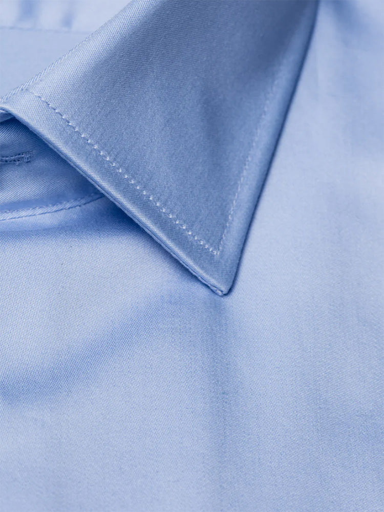 Chemise Slim Fit en popeline de coton, petit col français, poignets à double boutonnage,  100% coton.