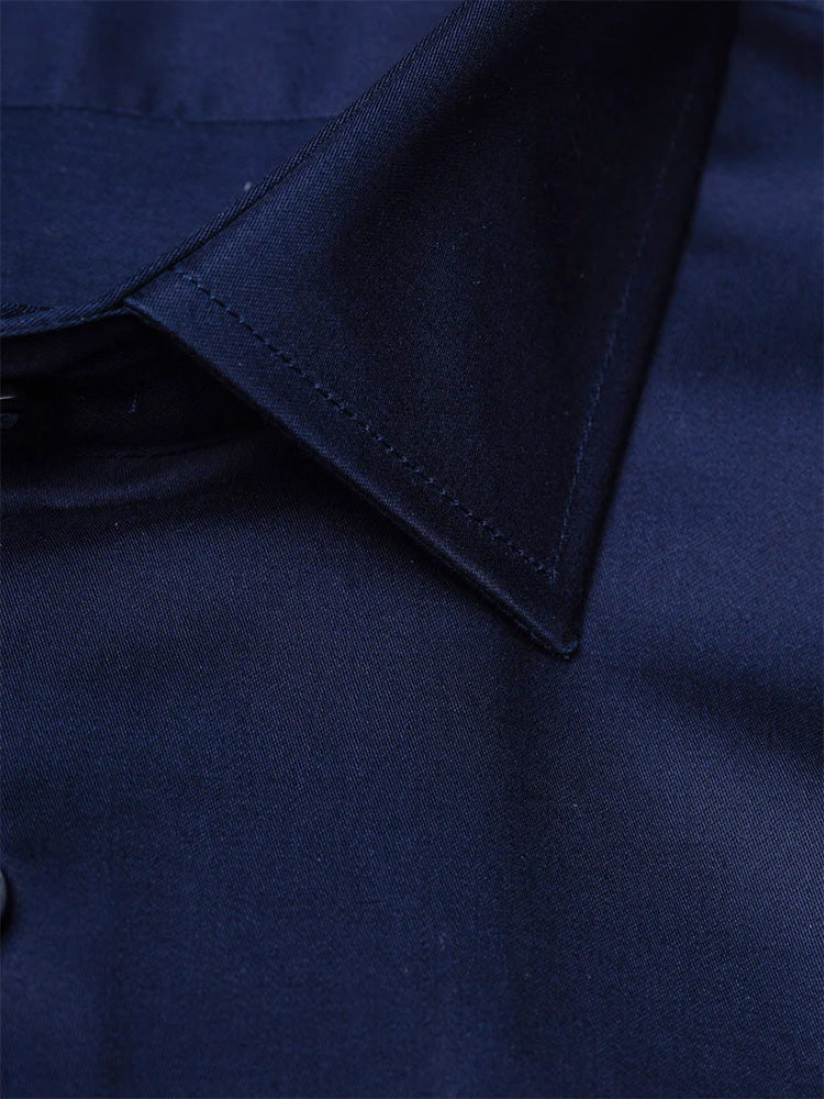 Chemise Slim Fit en popeline de coton, petit col français, poignets à double boutonnage, 100% coton.