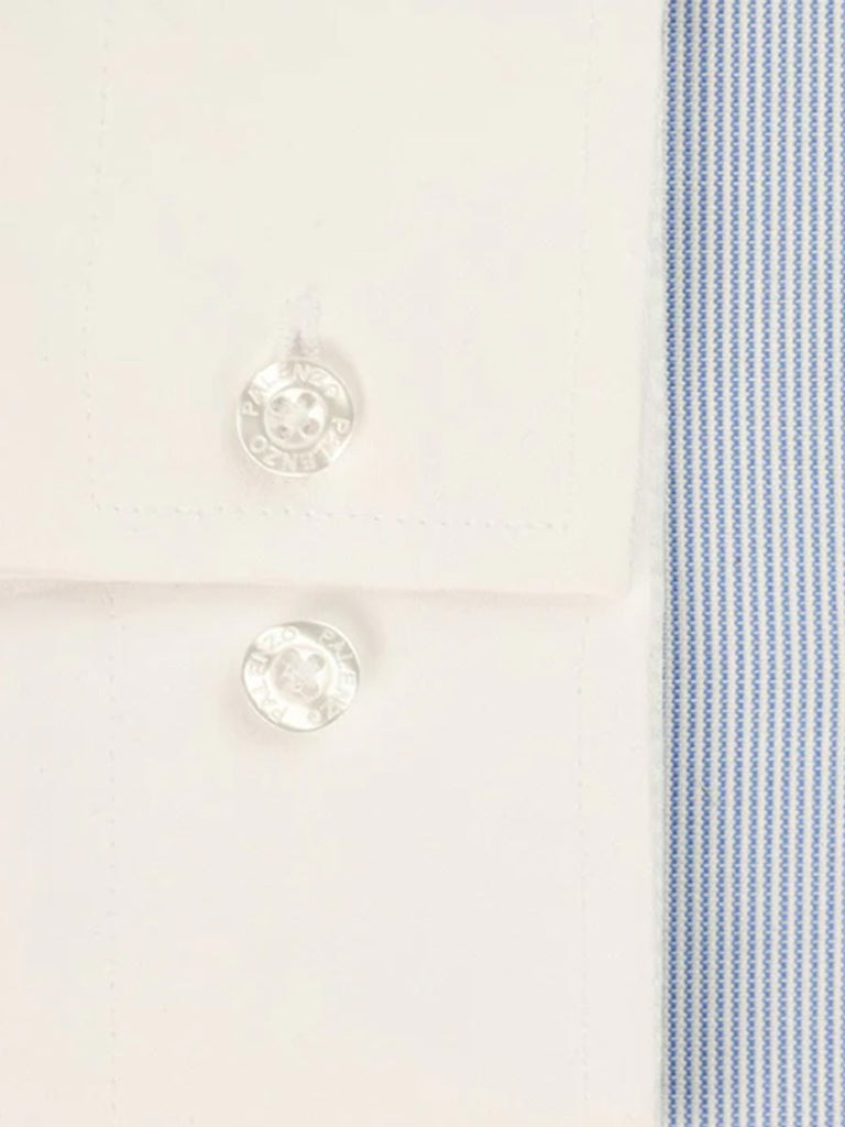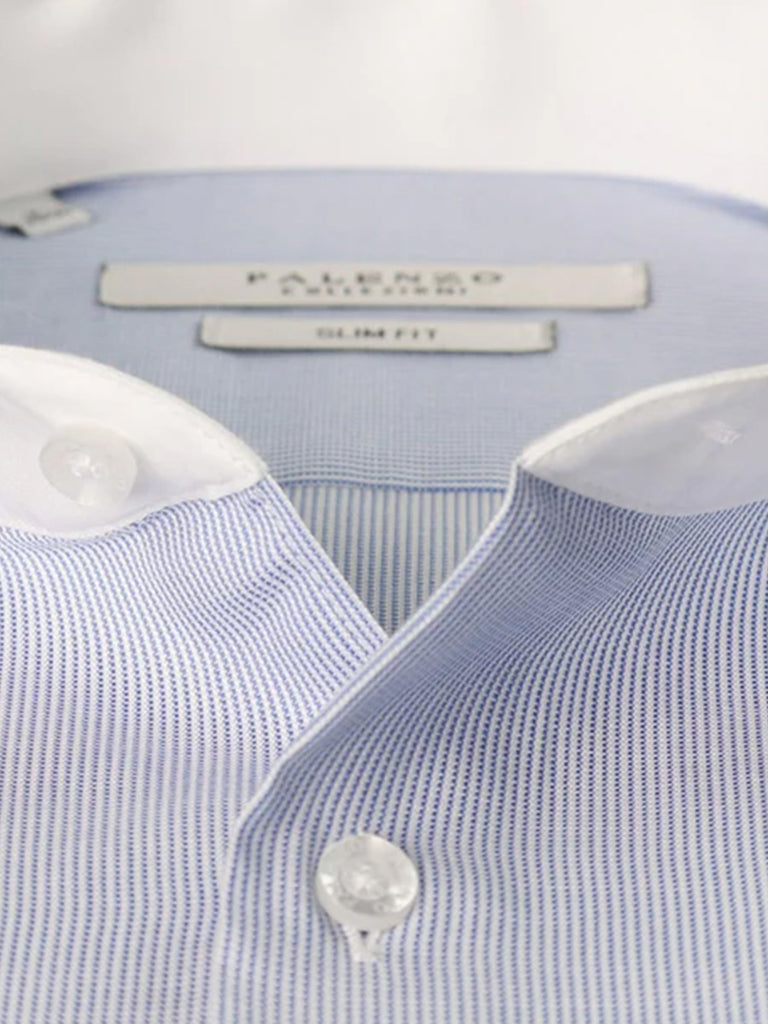 Chemise Slim Fit en popeline de coton, petit col français, poignets et col blanc à double boutonnage, 100% coton.