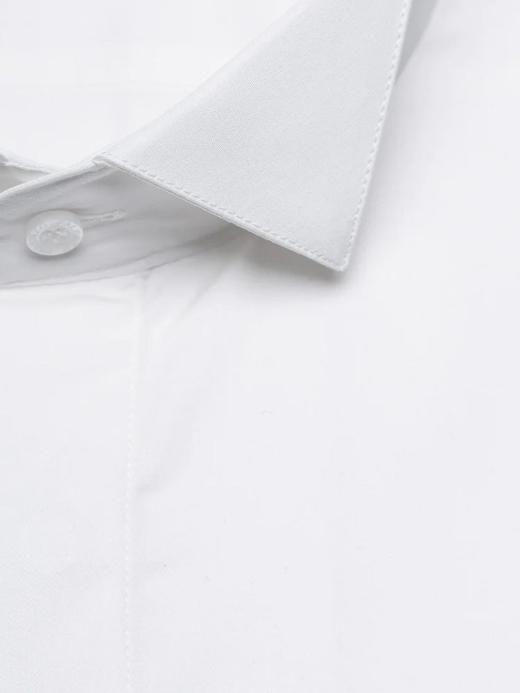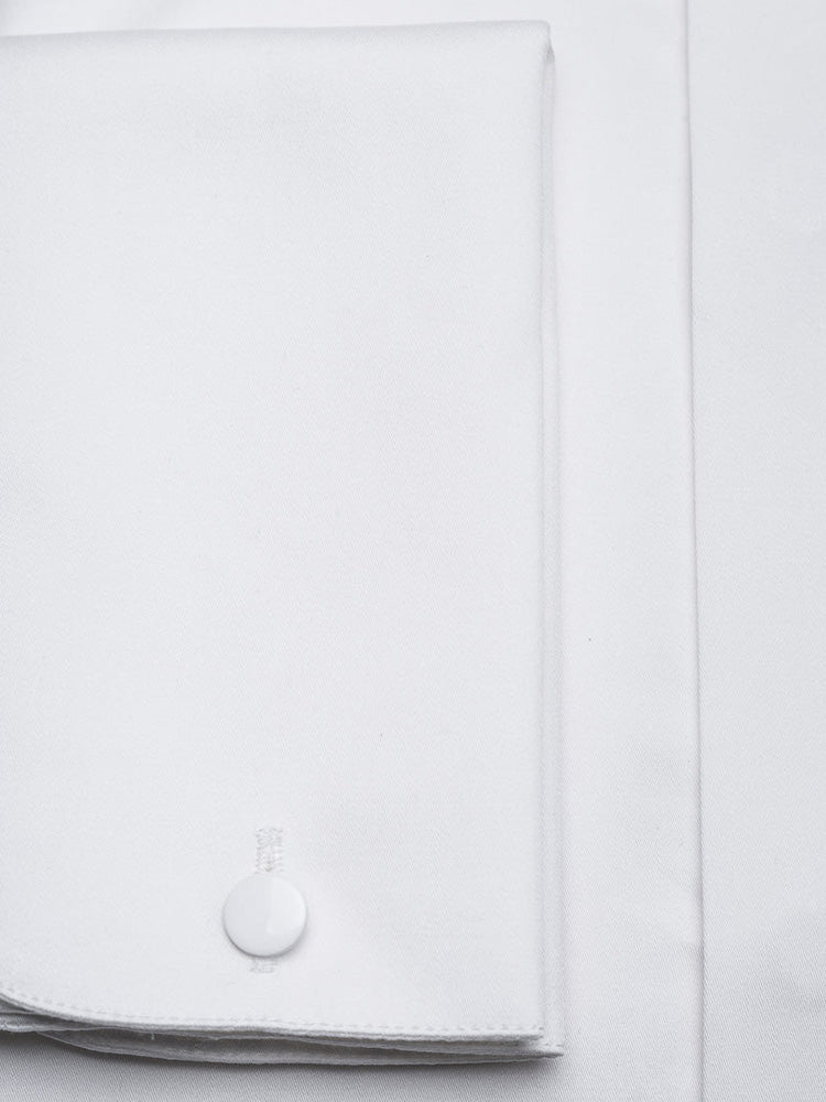 Chemise Slim Fit en popeline de coton, col cassé et gorge cachée, poignets mousquetaires, 100% coton.