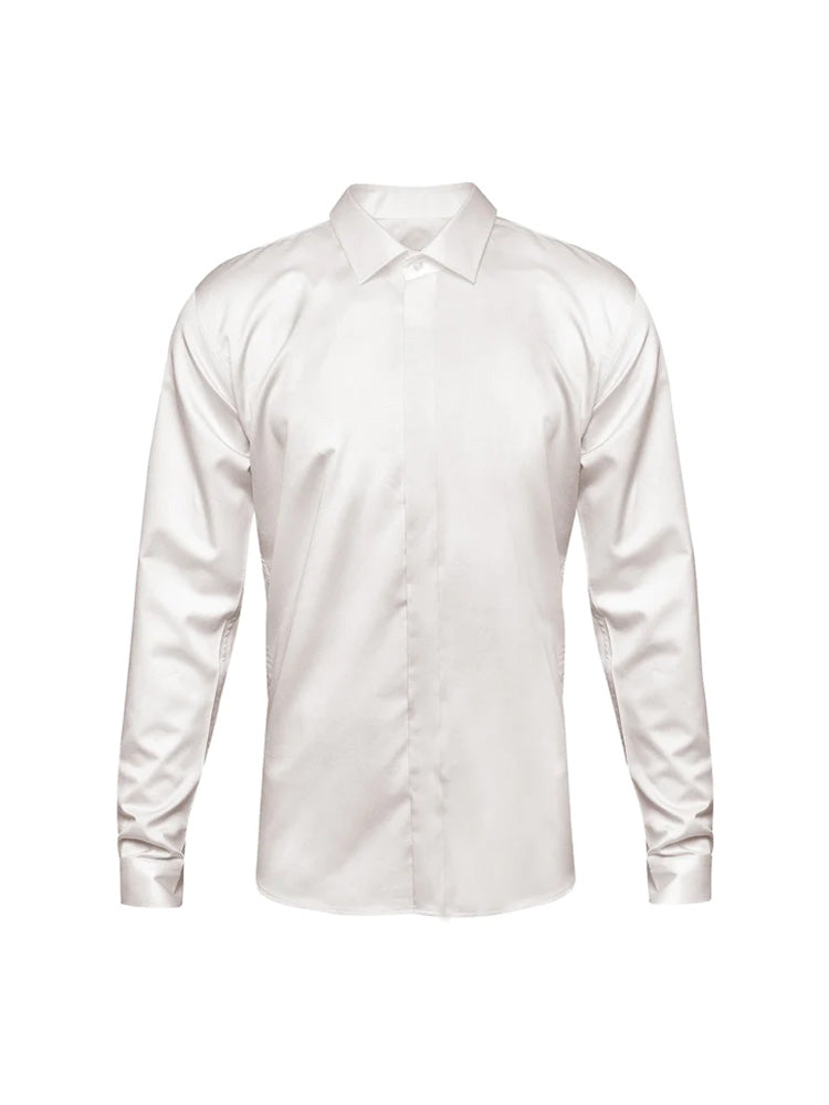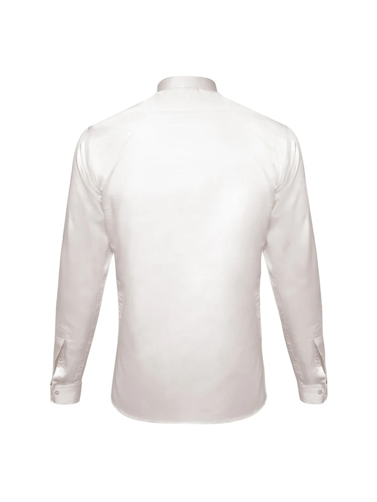 Chemise Slim Fit en popeline de coton, petit col français, gorge cachée, poignets mousquetaires, 100% coton.
