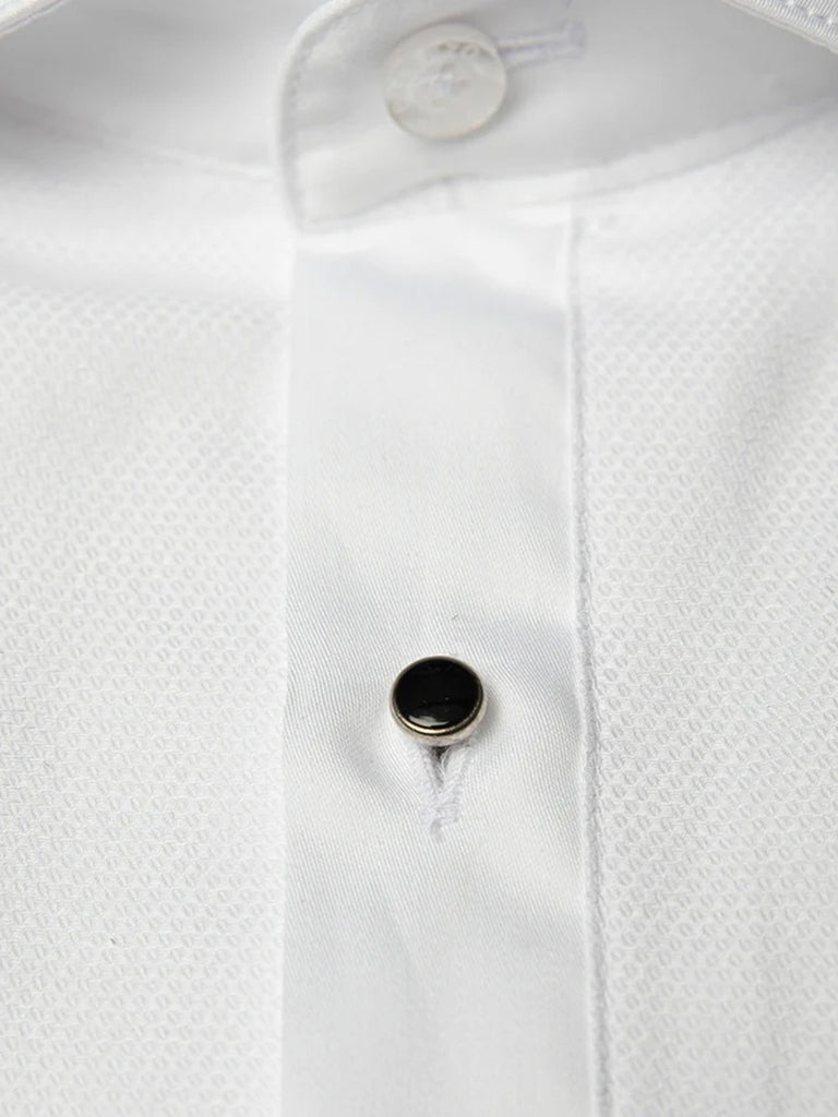 Chemise Slim Fit en popeline de coton, col cassé, plastron en iqué de coton à boutons apparents noirs et argent, poignets mousquetaires