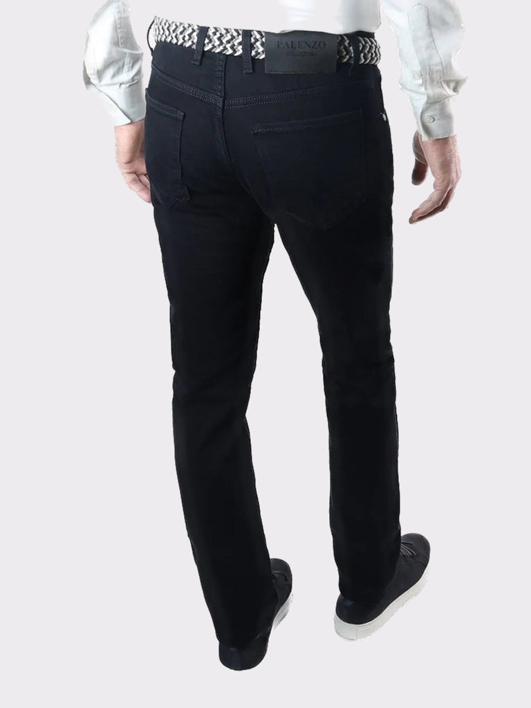 Jeans coupe slim couleur bleu marine, fermeture boutonnée, entièrement extensible, bas à 19 cm,  98% coton - 2% élasthanne.