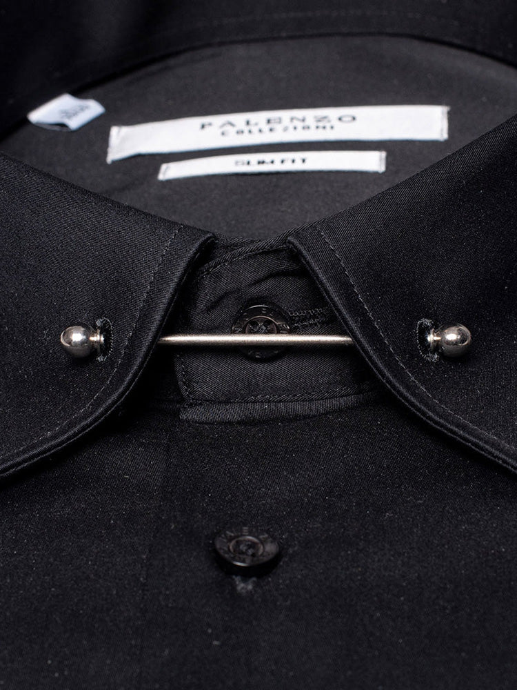 Chemise Slim Fit en popeline de coton, col anglais avec barrette, poignets à double boutonnage, 100% coton.
