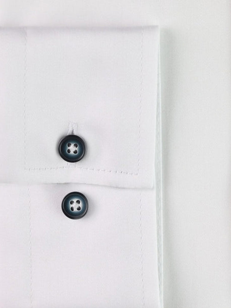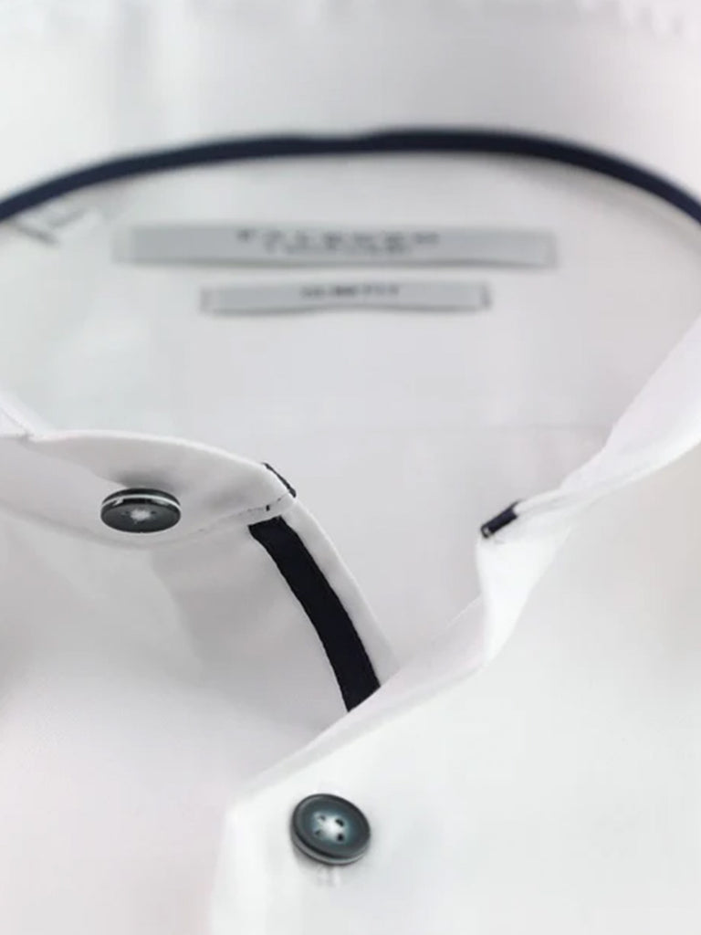 Chemise Slim Fit en popeline de coton, petit col français avec ganse fantaisie col intérieur et gorge, poignets à double boutonnage, boutons fantaisies, 100% coton.