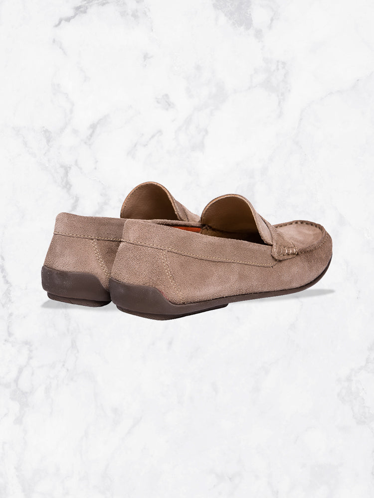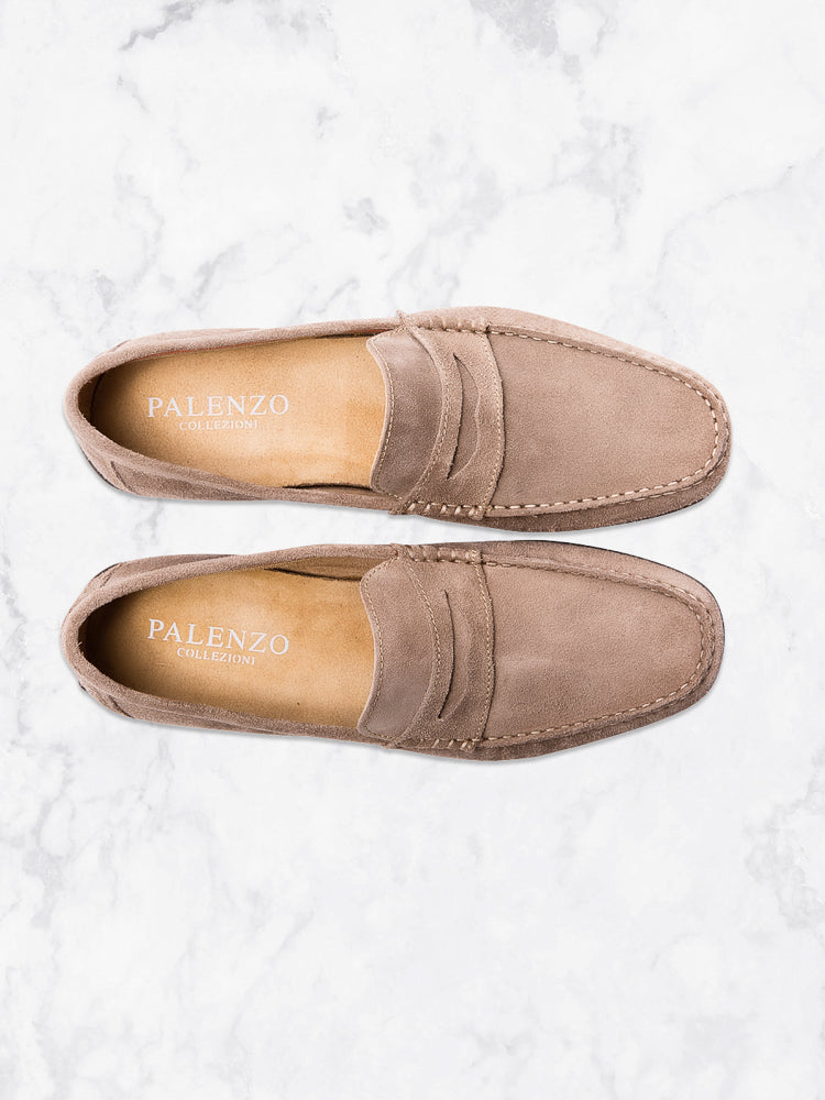 Mocassins en daim beige / Mocassins en daim, semelle gomme, 100% cuir