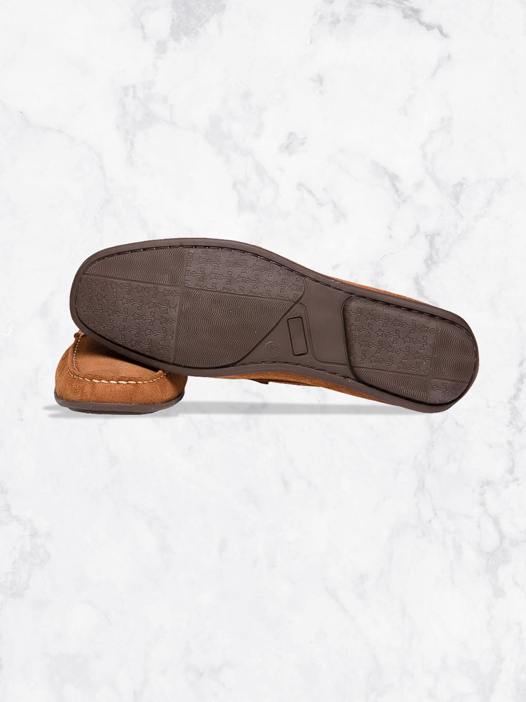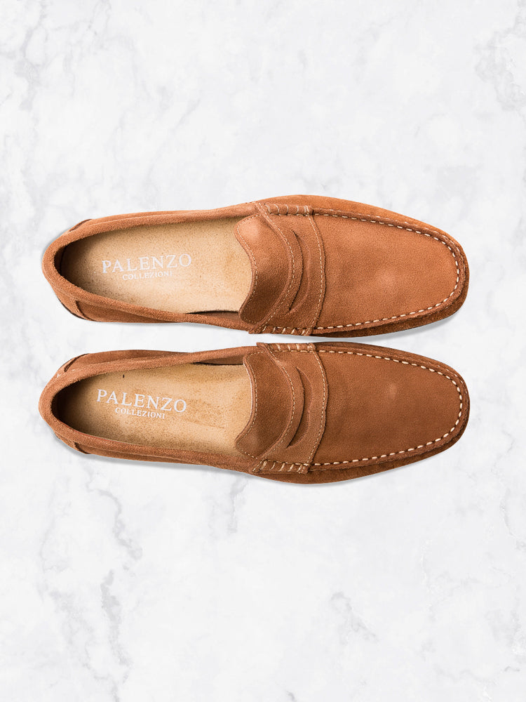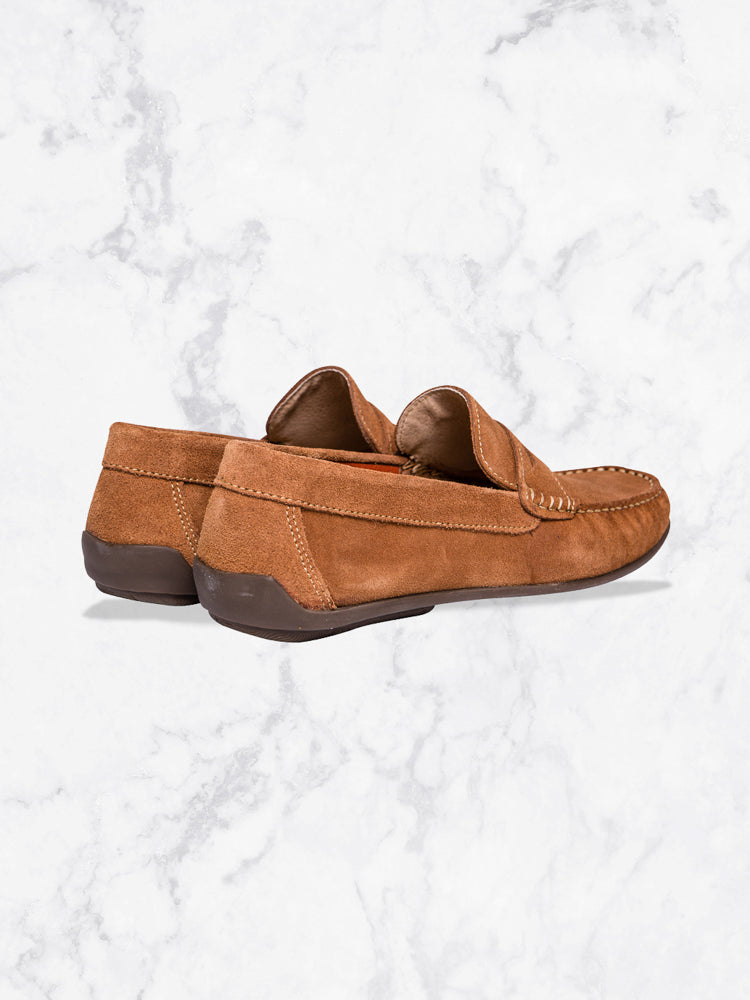 Mocassins en daim cognac / Mocassins en daim, semelle gomme, 100% cuir