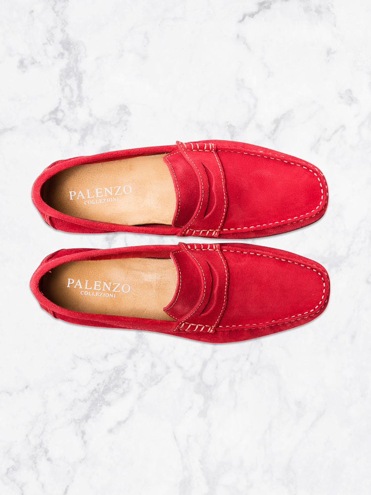Mocassins en daim rouge / Mocassins en daim, semelle gomme, 100% cuir.