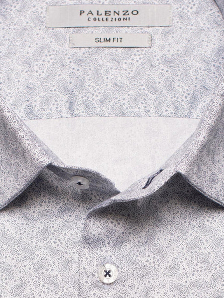 Chemise Slim Fit en popeline de coton, petit col français, poignets à double boutonnage, 100% coton.