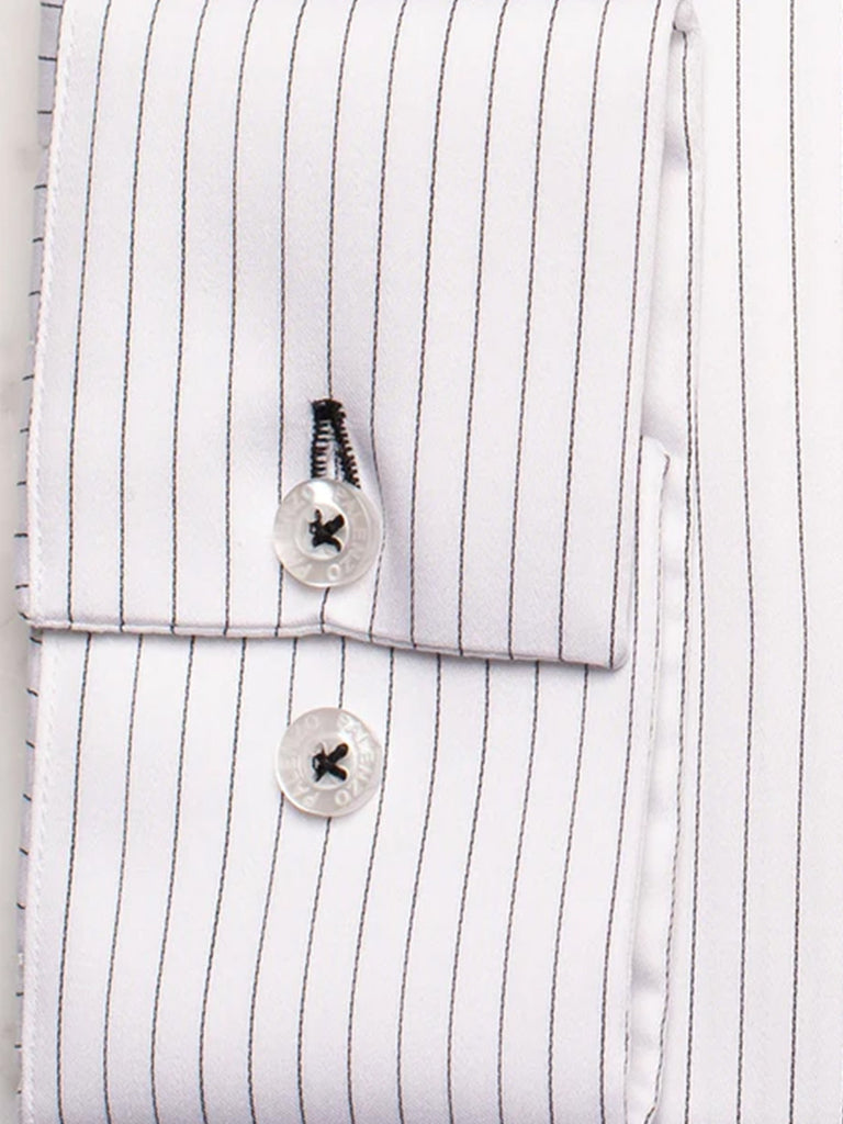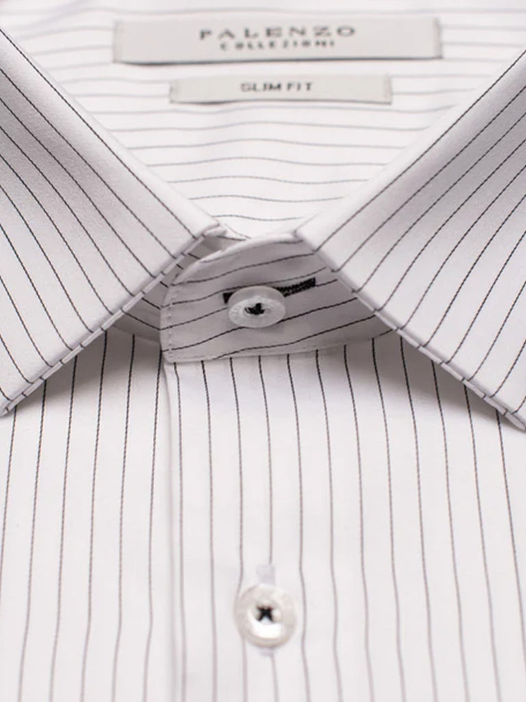 Chemise petit col français - Blanc et noir rayures