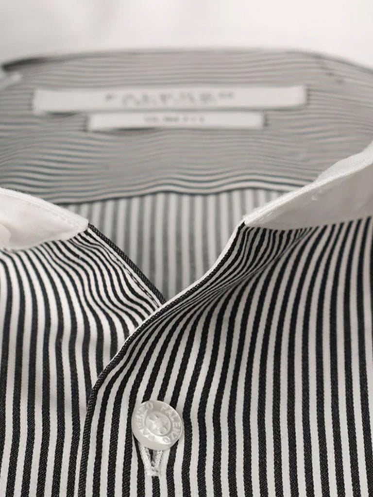 Chemise Slim Fit en popeline de coton, petit col français, poignets et col blanc à double boutonnage, 100% coton.